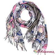 Палантин Счастливые котики двусторонний (серый) 70х180 см. Осенняя коллекция (Шерсть 45%, Вискоза 25%, Акрил 30%)