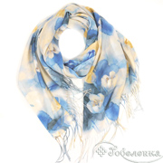 Палантин Крокусы и тюльпаны (синий и жёлтый) 74х176 см. (Бамбук 100%)