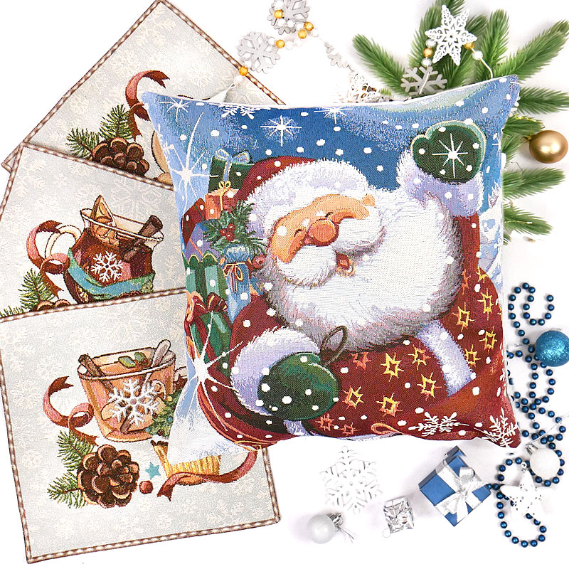 Собирайтесь к празднику с нашим новогодним набором, который принесет вам море улыбок и волшебства! Гобеленовая наволочка Новогоднее чудо с Дедушкой Морозом и подарками за плечами создаст атмосферу настоящего праздника. Положите ее под голову — и пусть волшебные сны становятся вашими спутниками. А к горячему чаю после морозного дня добавьте угощений на стильных салфетках с капкейками. Зима — это не только холод, но и уют, и мы готовы сделать ваши дни ярче!