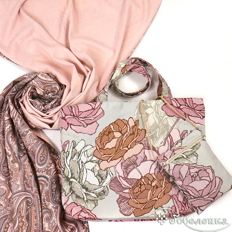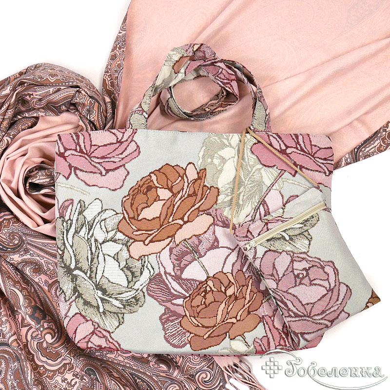 Удобная гобеленовая сумка на подкладке с гобеленовыми ручками.