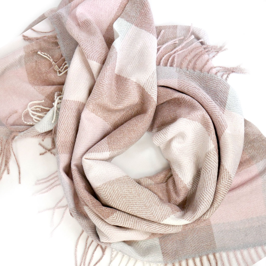 Французские кисти: длинные, пушистые, выполнены в тон основному цвету — добавляют платку романтичности и завершённости.