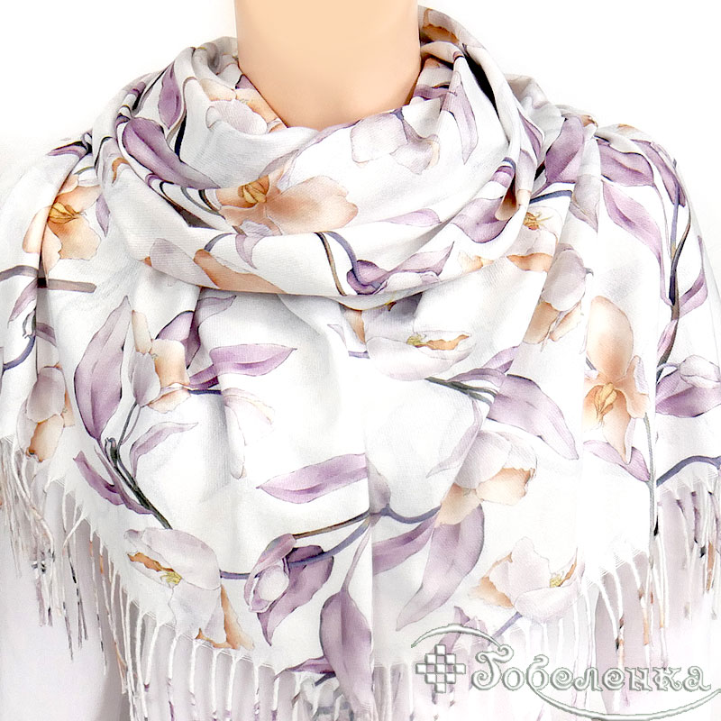 Этот очаровательный теплый палантин сезона осень-зима с изысканным названием Зимняя Орхидея создан для женщин, которые стремятся подчеркнуть свою природную грацию и неповторимость. Цветочная композиция на ткани воплощает дух свободы и загадочности, а мягкий лилово-розовый оттенок напоминает о нежных лепестках утренней зари.