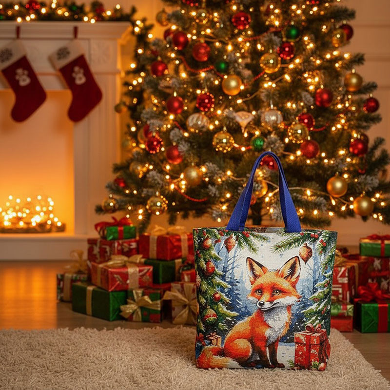 Гобеленовая сумка-шоппер с милой лисой - это история о гармонии, уюта и тепле в любое время года. Яркие зимние мотивы с пушистой лисой среди ёлок и праздничных игрушек моментально создают атмосферу праздника, наполняют будни улыбкой и ощущением заботы о себе.