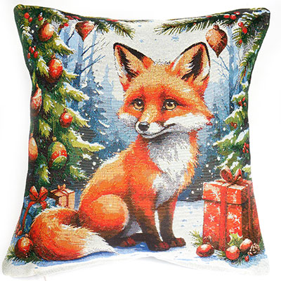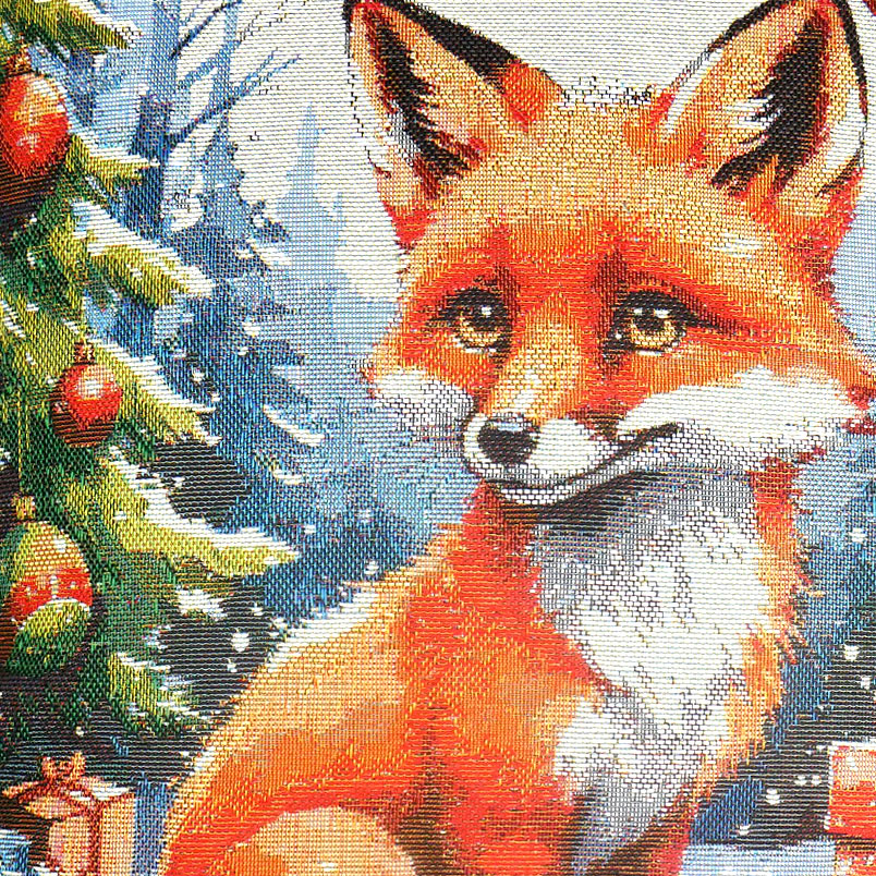 Эта двусторонняя декоративная наволочка из гобелена - настоящий праздник для глаз и сердца. Милый лисёнок, сидящий на снегу среди заснеженных елок, украшенных яркими шарами и красными ягодами, его взгляд - тёплый, чуть задумчивый, как будто он знает все тайны зимы.