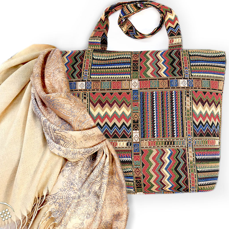 Подарочный набор Мексика - сумка гобелен + палантин из кашемира, этнический стиль и тепло в одном комплекте