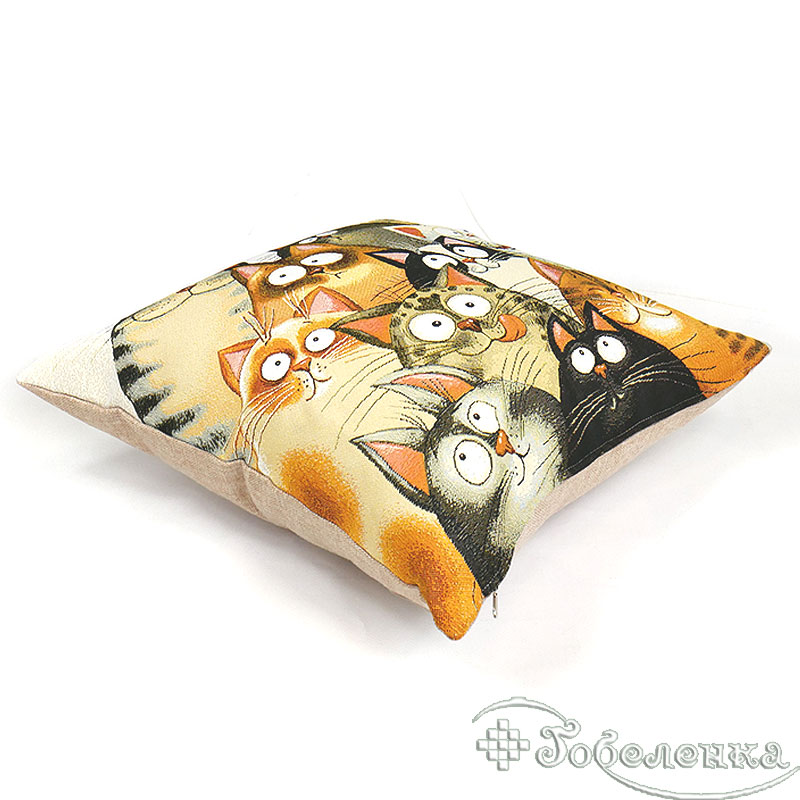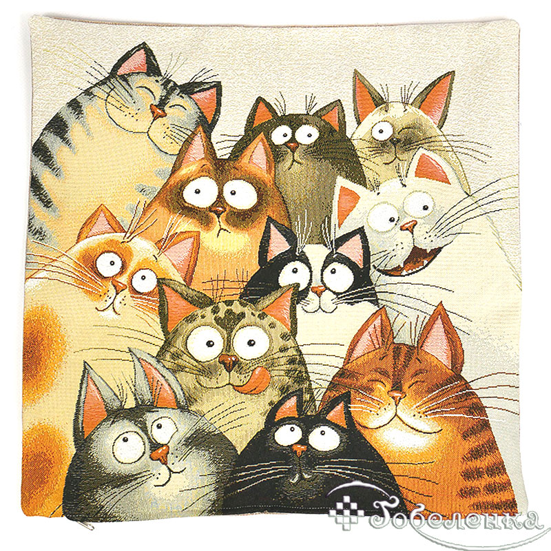 Наволочка из гобелена с котиками Мурчащая компания - ваша маленькая толпа улыбок в интерьере. Не просто подушка, а живая комедия, сплетённая в каждом стежке: котики с разными характерами, будто только что вышли из мультфильма… Это не декор - это радость, которую вы можете обнять.