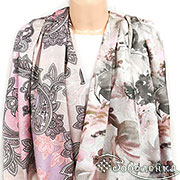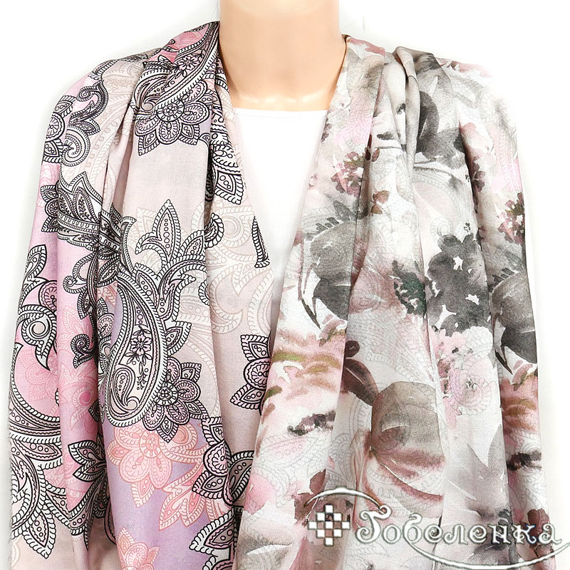 Палантин Богема №8 (дымчато-розовый) 70х180 см– гармония флористики и восточного орнамента, элегантное сочетание двух художественных мотивов для вашего образа.