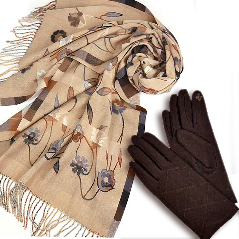 Жаккардовый палантин Винтаж №2 Карамель (66х180 см, кашемир) и женские перчатки Havvs темно-коричневого цвета станут вашим ежедневным источником радости и уюта. Окунитесь в атмосферу элегантности с роскошным аксессуаром и ощутите заботу о себе в каждой детали!