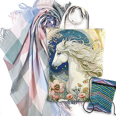 Сумка из гобелена с белым конем, платок в осенних тонах и косметичка Лазурит- идеален для тех, кто хочет, чтобы подарок был тёплым, стильным и запоминающимся.