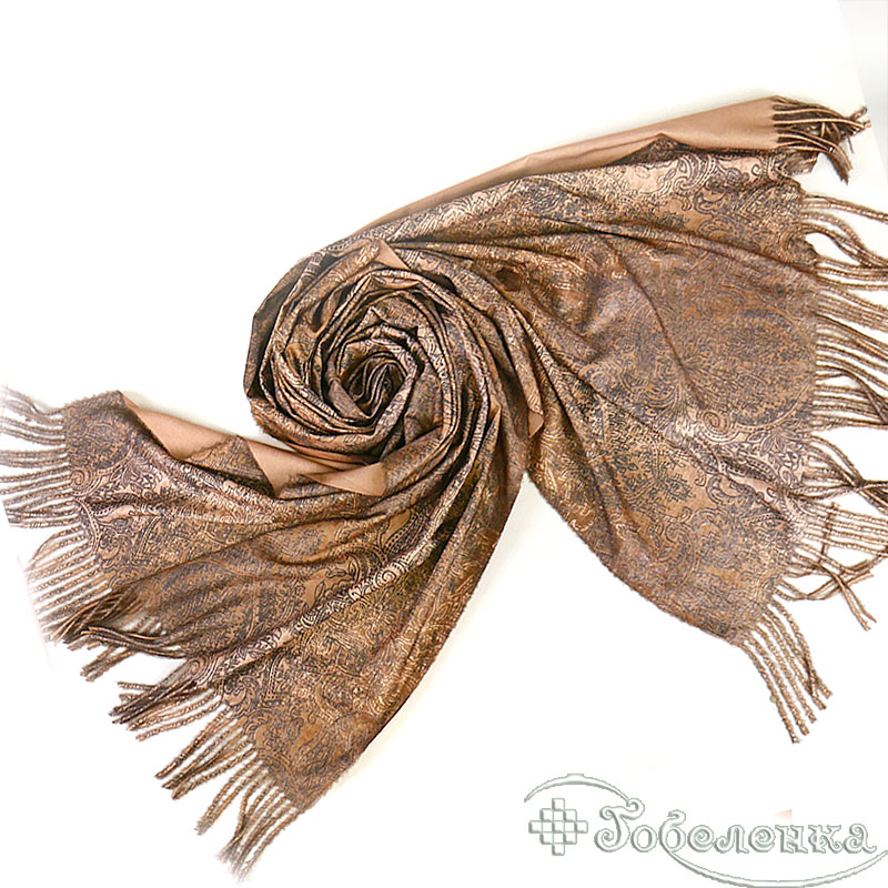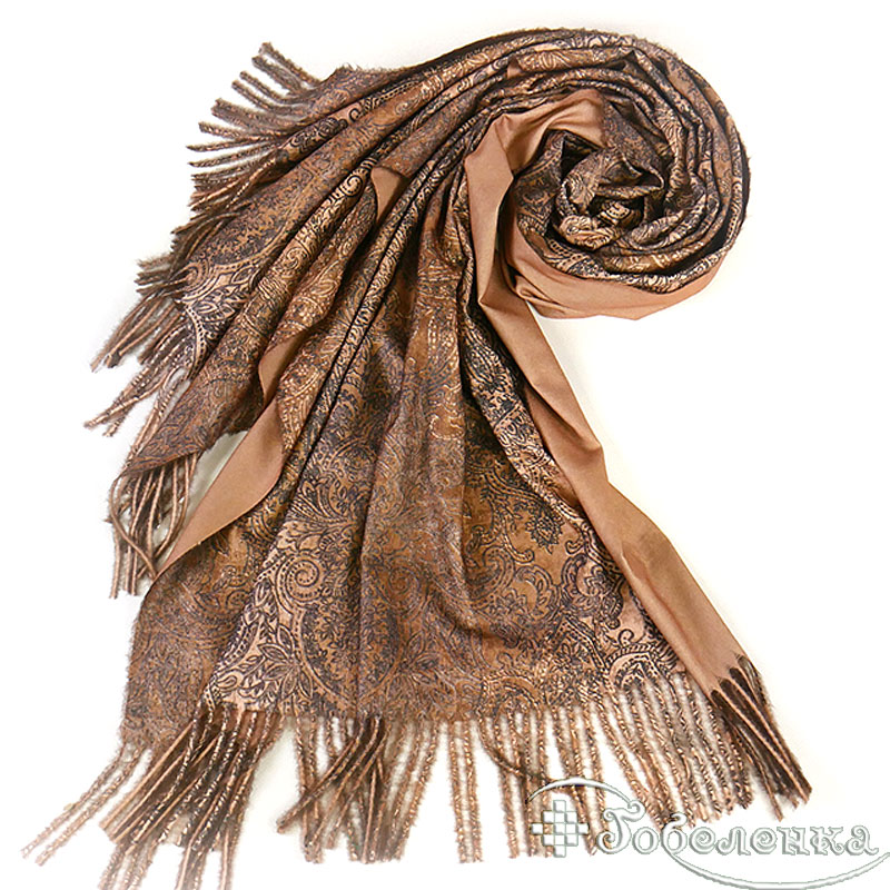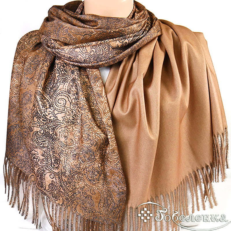 Теплый палантин с орнаментом с одной стороны и однотонный с другой