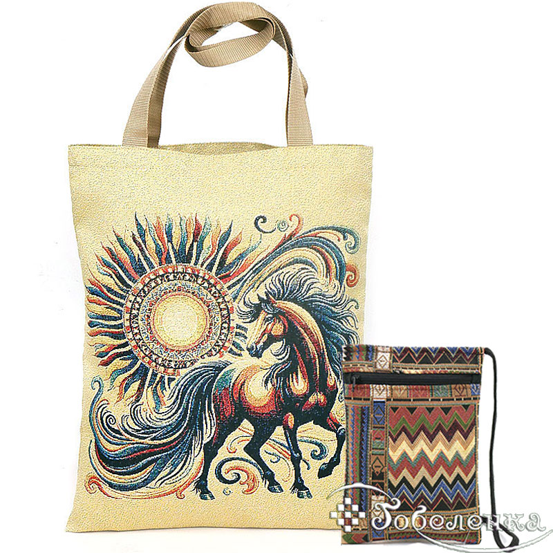 Подарок символ года. Сумка гобелен Конь-Огонь яркая энерия лошади и солнца удачный подарок символ года.