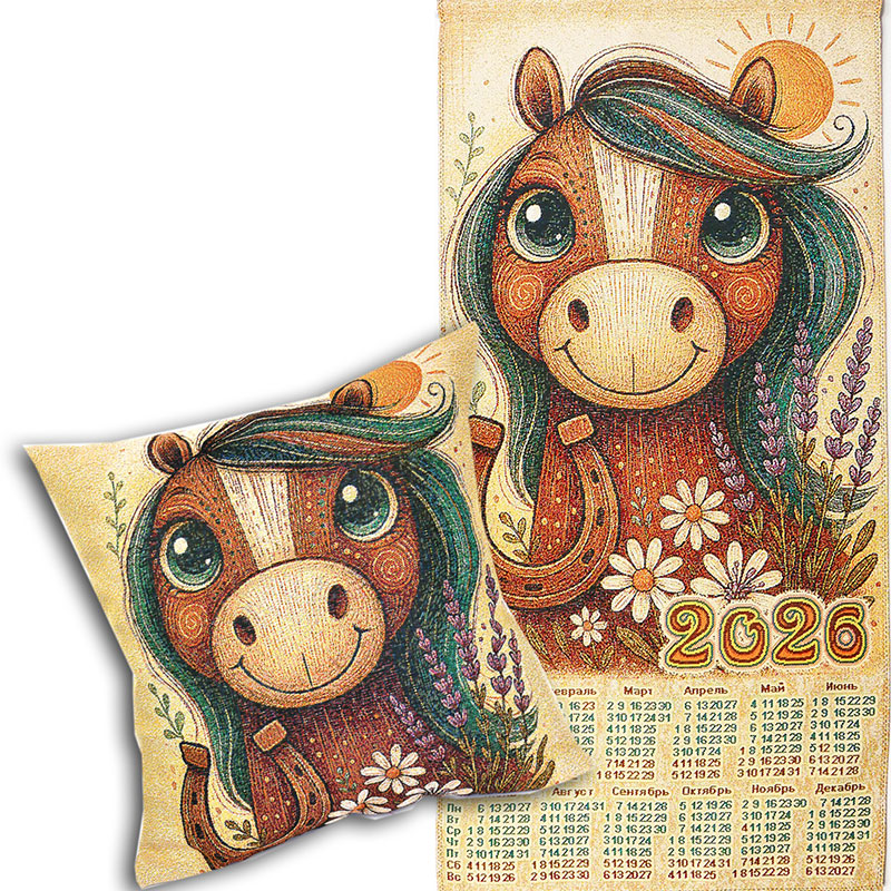 Гобеленовый календарь Лошадка удачи 2026 38х77 +/-2 см