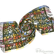 Жаккардовый палантин Аморе в оттенке темно оливковый - это палантин‑настроение: глубокий фон, вспышки красного, золота, синего и зелёного создают живую «картину», которая каждый раз раскрывается по‑новому.