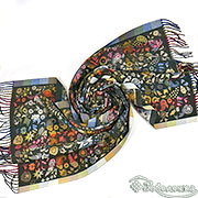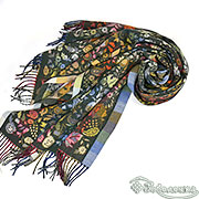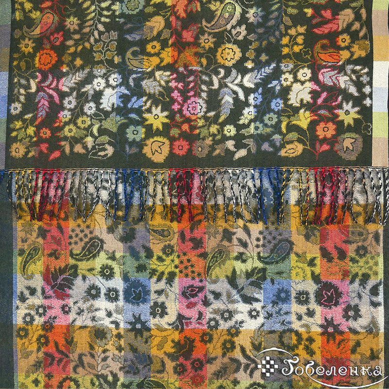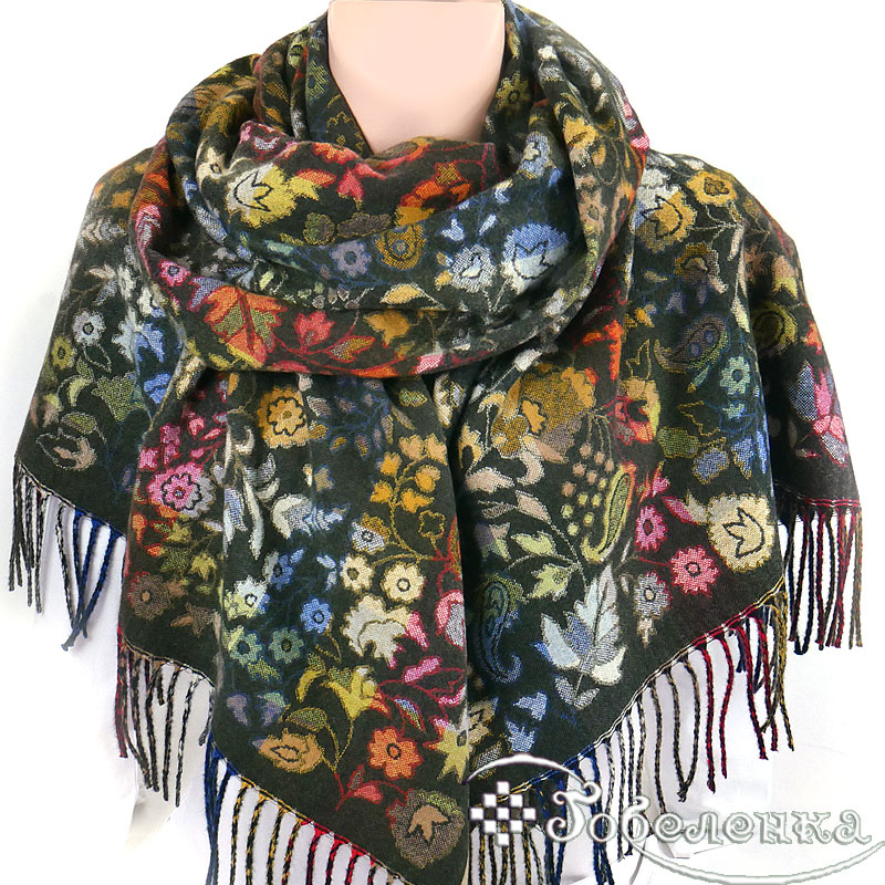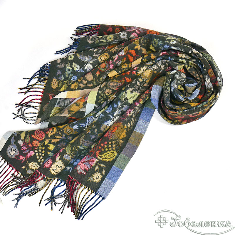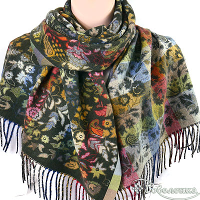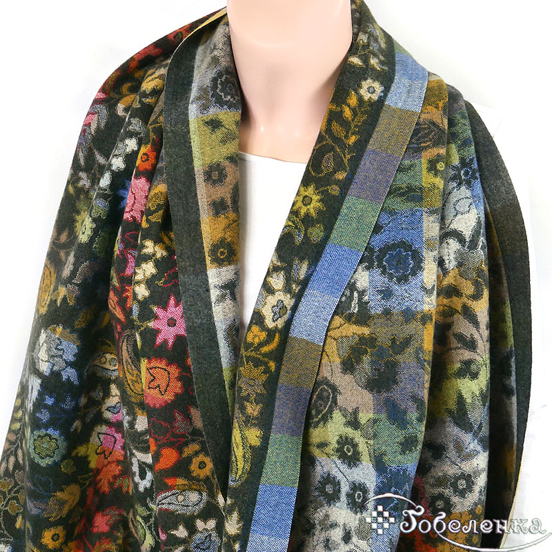 Жаккардовый палантин Аморе в оттенке тёмного изумруда - это палантин‑настроение: глубокий фон, вспышки красного, золота, синего и зелёного создают живую «картину», которая каждый раз раскрывается по‑новому.