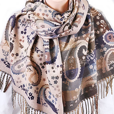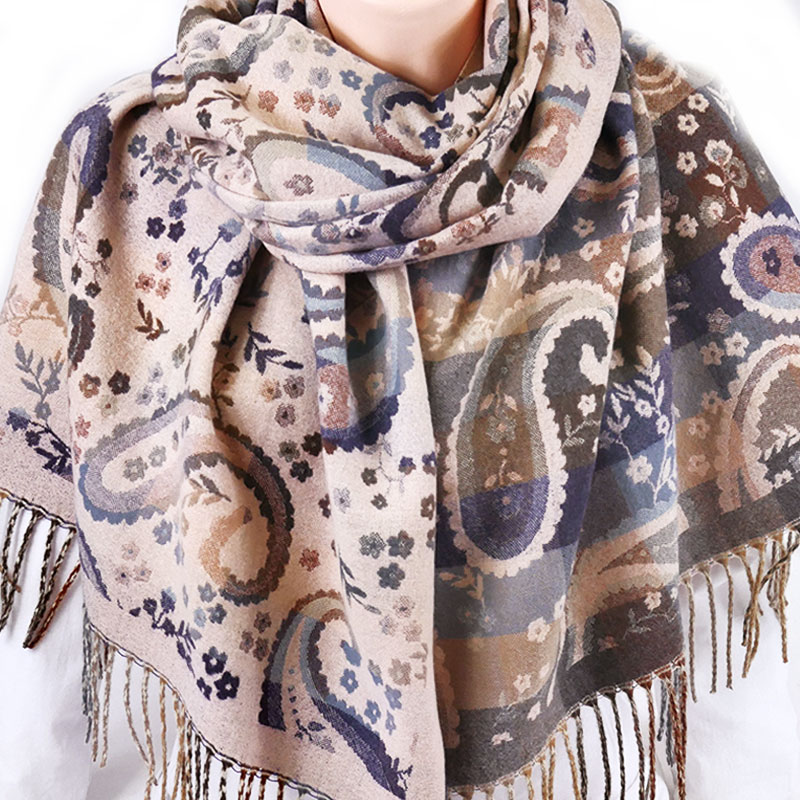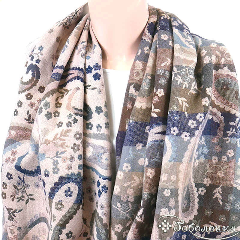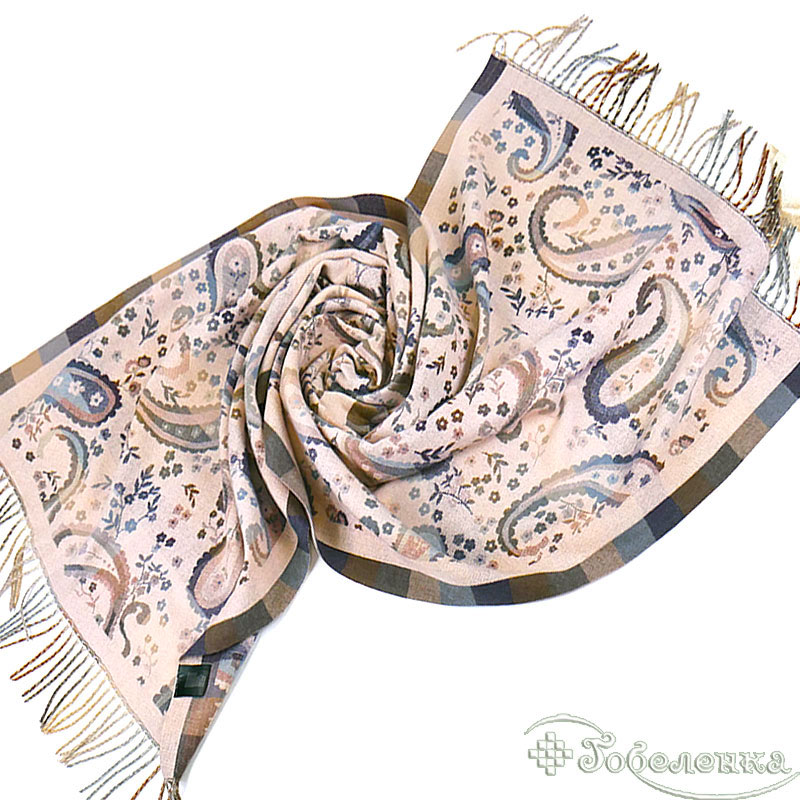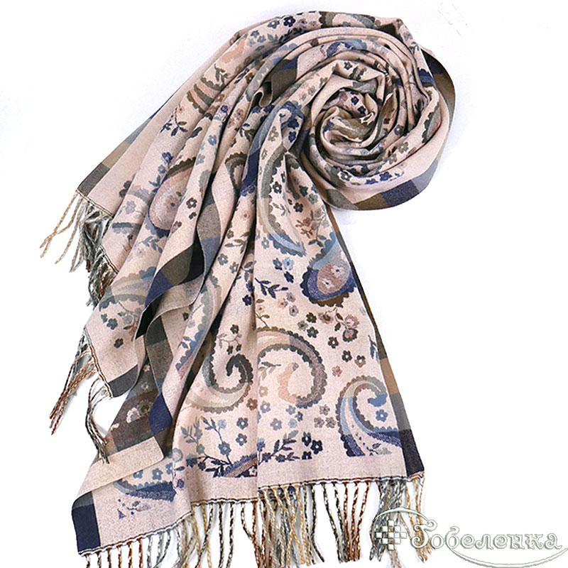 Жаккардовый палантин Шарм - это теплый двусторонний палантин в нежных оттенках пудры.