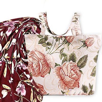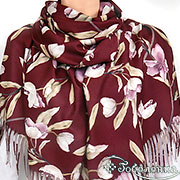Великолепный подарок - палантин благородного бордового цвета и сумка с розами