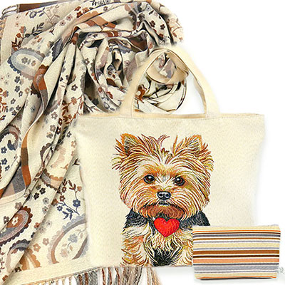 Набор подарочный: Йоркширские терьеры + Жаккардовый палантин Шарм (светло кремовый) + Летняя мелодия - ваша маленькая трилогия любви, тепла и радости.