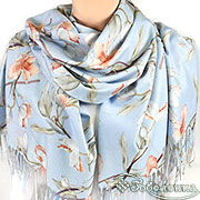 Палантин тёплый Зимняя Орхидея №7, размер 70х180 см - из 100% искусственного кашемира, мягкий, лёгкий, но очень тёплый. На светло-голубом фоне - нежные орхидеи в персиковых, зеленых и белых тонах. По краям - длинная бахрома, придающая изделию романтичности. Отлично подходит для прохладных вечеров, офиса, путешествий и подарка - особенно тем, кто любит цветы и спокойную элегантность.