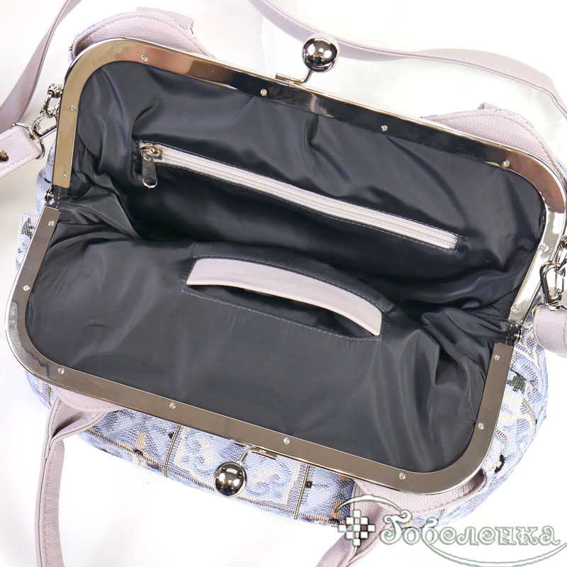 Компактный силуэт, фактурный гобелен и замок «поцелуйчик» создают лёгкое винтажное настроение, а продуманные детали делают модель удобной для повседневной носки.
