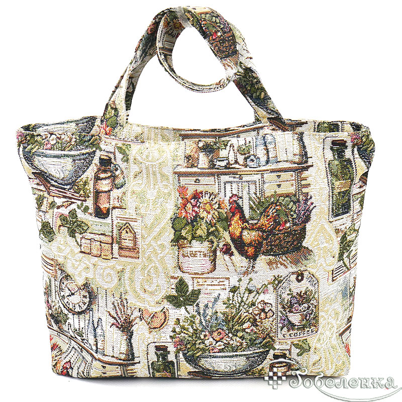 Сумка шоппер из гобелена Полдень - ваш личный уголок прованского уюта. С петушком, травами и запахом свежего хлеба.