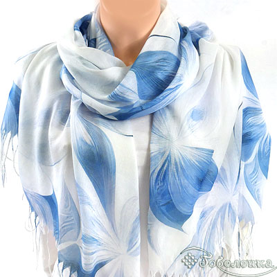 Образ и стиль. Этот палантин с цветочным рисунком идеально сочетается с монохромными луками, романтичными платьями, базовыми футболками и джинсами, а также с деловым костюмом. Он станет ключевым акцентом в стилях casual, smart casual и romantic, добавляя образу визуальный интерес и изящество.