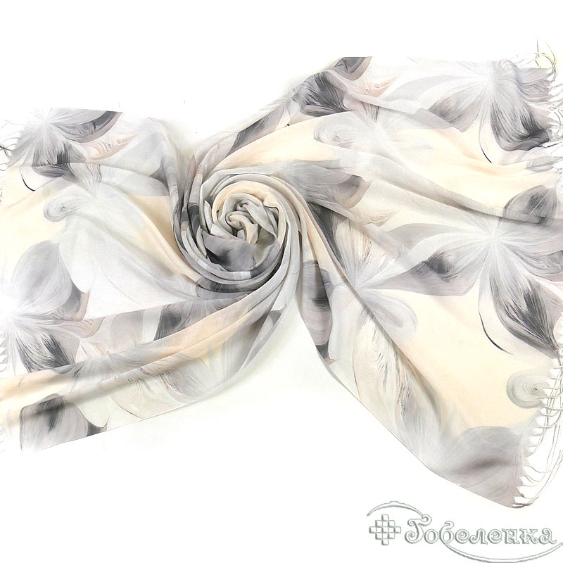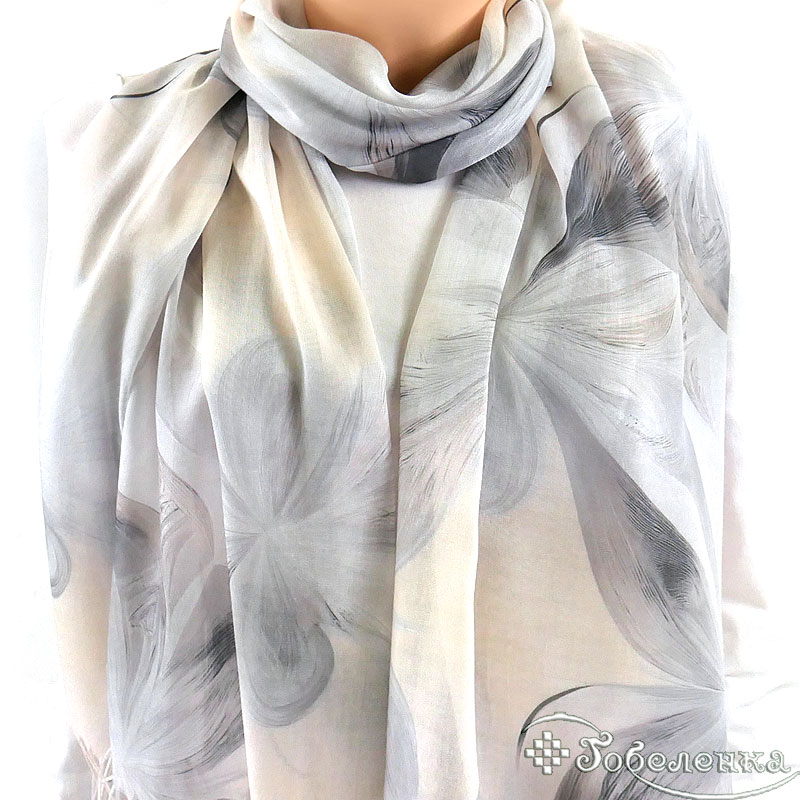 Образ и стиль. Этот палантин с цветочным рисунком идеально сочетается с монохромными луками, романтичными платьями, базовыми футболками и джинсами, а также с деловым костюмом. Он станет ключевым акцентом в стилях casual, smart casual и romantic, добавляя образу визуальный интерес и изящество.