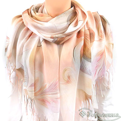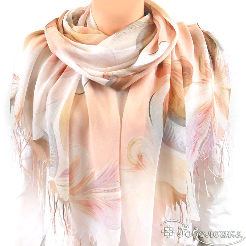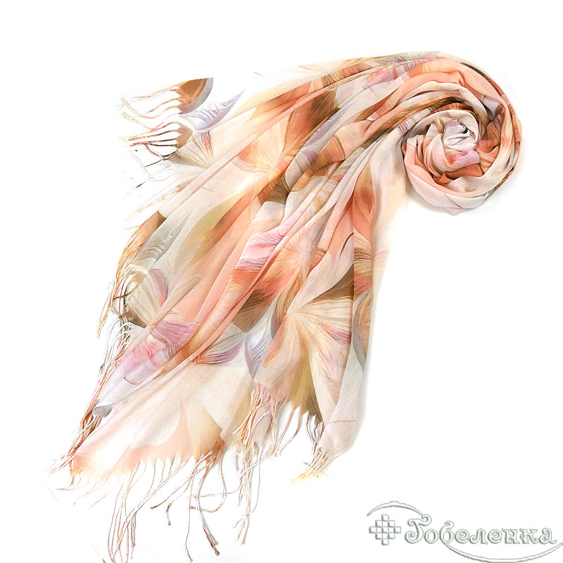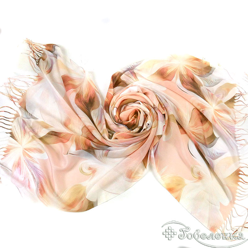 Основной цвет палантина - миндально-персиковый, который ассоциируется с теплом и уютом. Этот оттенок прекрасно сочетается с весенними цветами, создавая гармоничную и приятную для глаз композицию. Палантин идеально подойдет для создания романтичного и женственного образа, подчеркивая вашу индивидуальность и стиль.