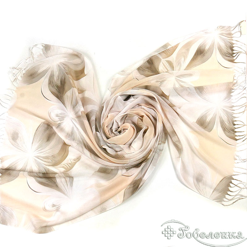 Основной цвет палантина - теплый кофейный, который ассоциируется с уютом и спокойствием. Этот оттенок прекрасно сочетается с весенними цветами, создавая гармоничную и приятную для глаз композицию. Палантин идеально подойдет для создания романтичного и женственного образа, подчеркивая вашу индивидуальность и стиль.