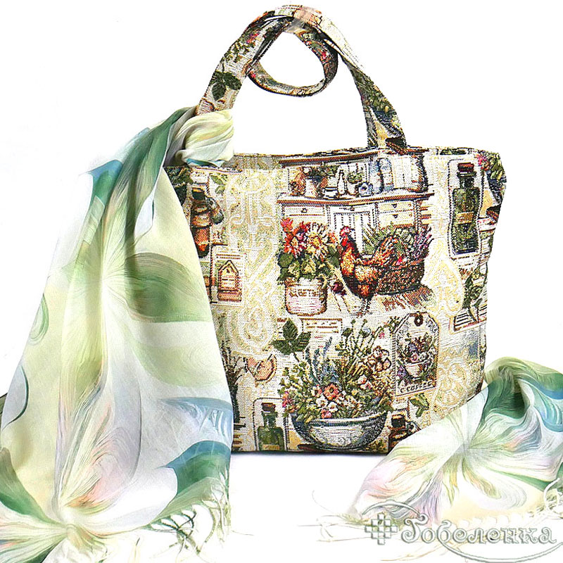Сумка шоппер из гобелена в стиле прованс Полдень + Весна - большой летний женский шарф с цветочным рисунком салатового цвета: стиль и комфорт в каждом дне!