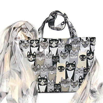 - Сумка с подкладкой и молнией (широкая) гобеленовая коты 31х42 см: