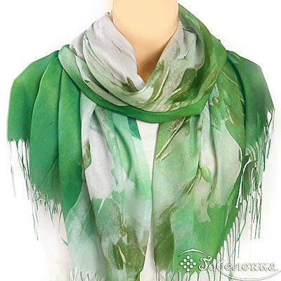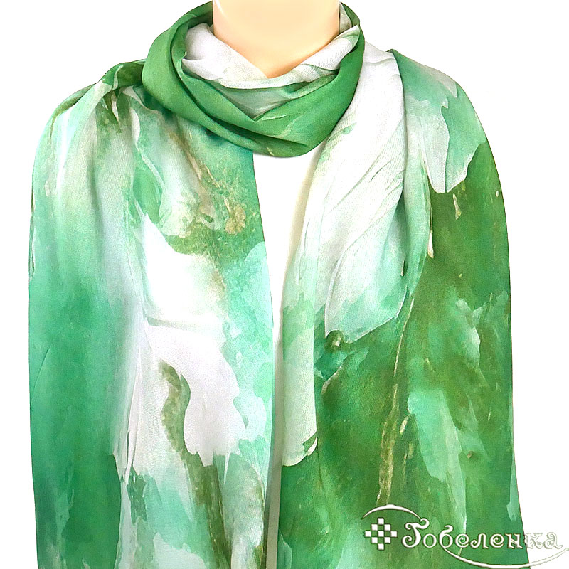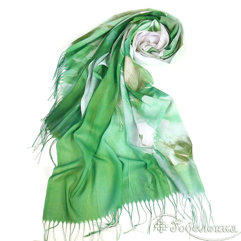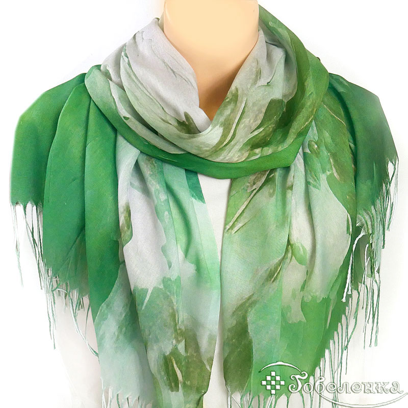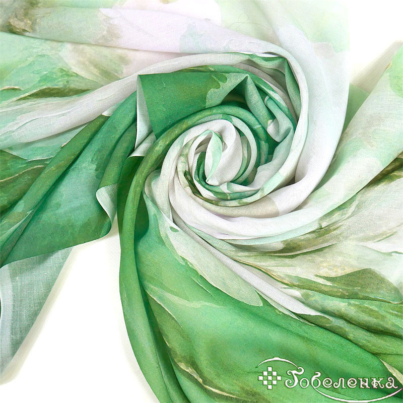 Акварельная зелень с нежными переходами - палантин Волшебный цветок добавляет спокойную роскошь даже самой простой одежде.