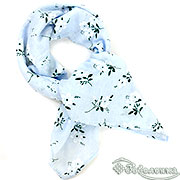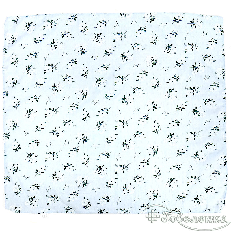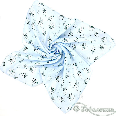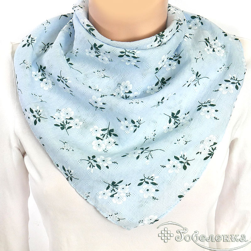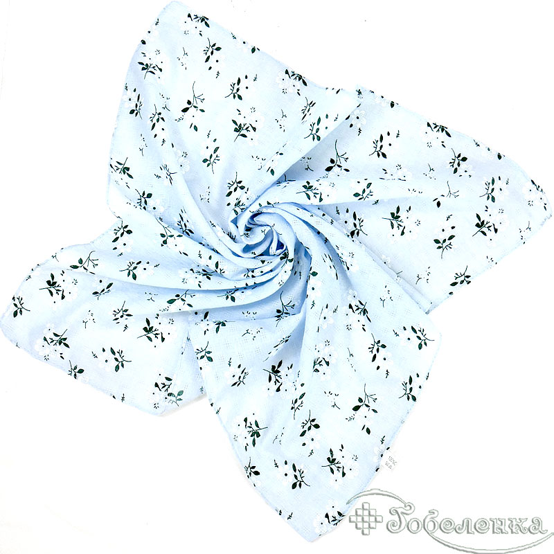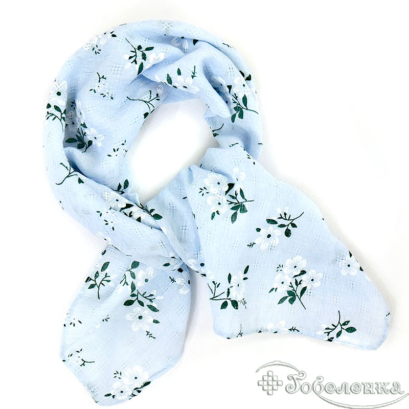 Платок шейный Вербена (голубой) - тот самый голубой платок, который выглядит чисто и изящно: лёгкий фон “небо” и мини‑веточки создают эффект ухоженности, будто вы продумали образ заранее.