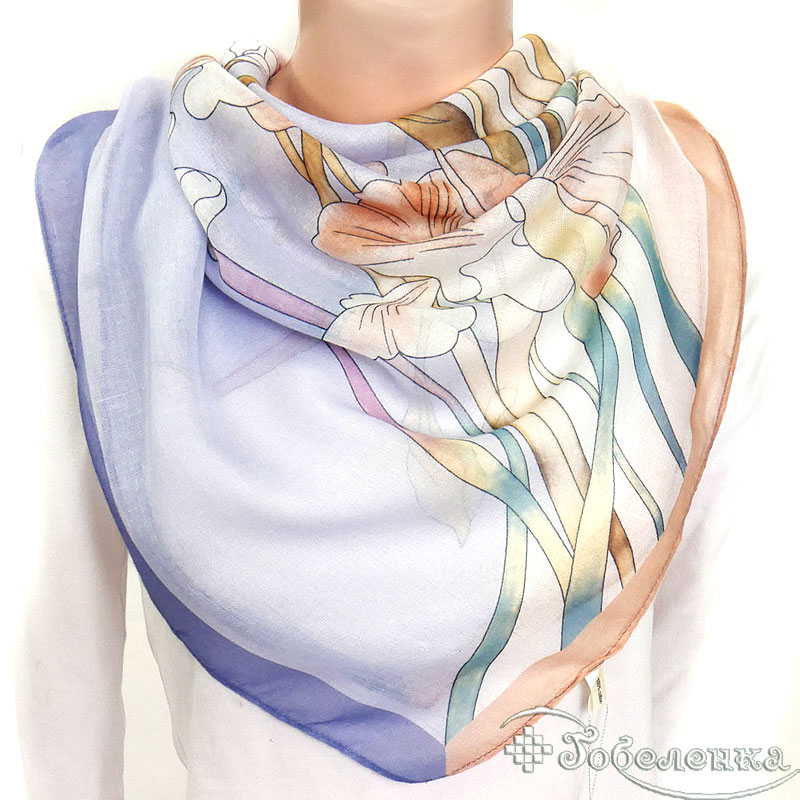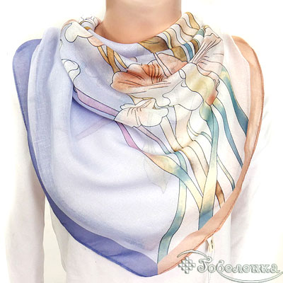 Добавьте платок Ирисы в корзину, если хотите универсальный аксессуар “на всё”: на шею, на голову, на плечи или на ручку сумки. Большой формат 87×87 см красиво драпируется и мгновенно делает образ более женственным и собранным.