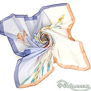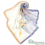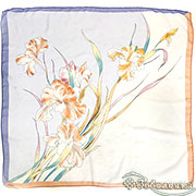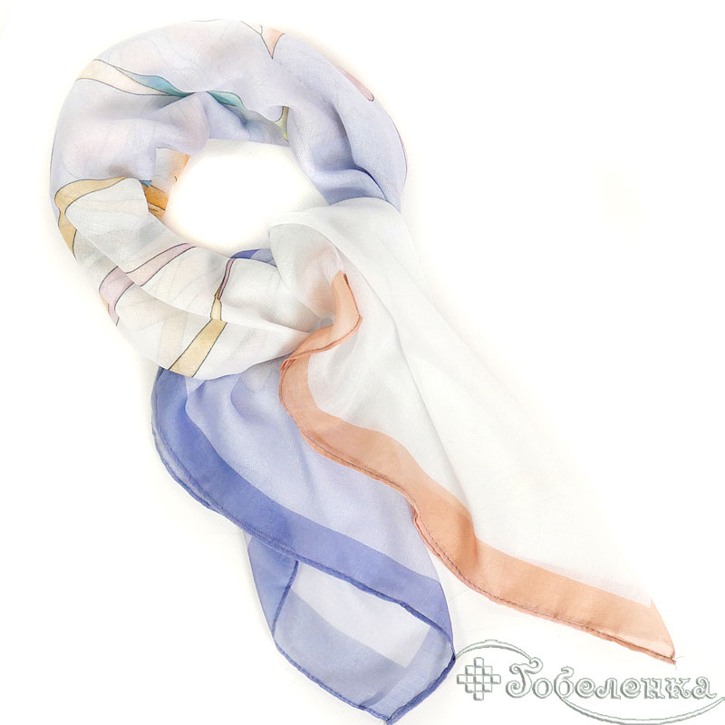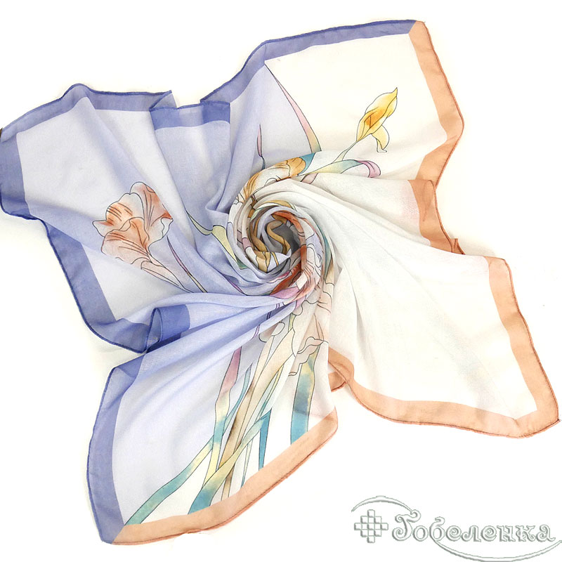 Платок Ирисы 87×87 см цвет №7 - большой квадратный платок из 100% хлопка с очень светлой, почти молочно‑белой основой и мягкими пастельными оттенками.