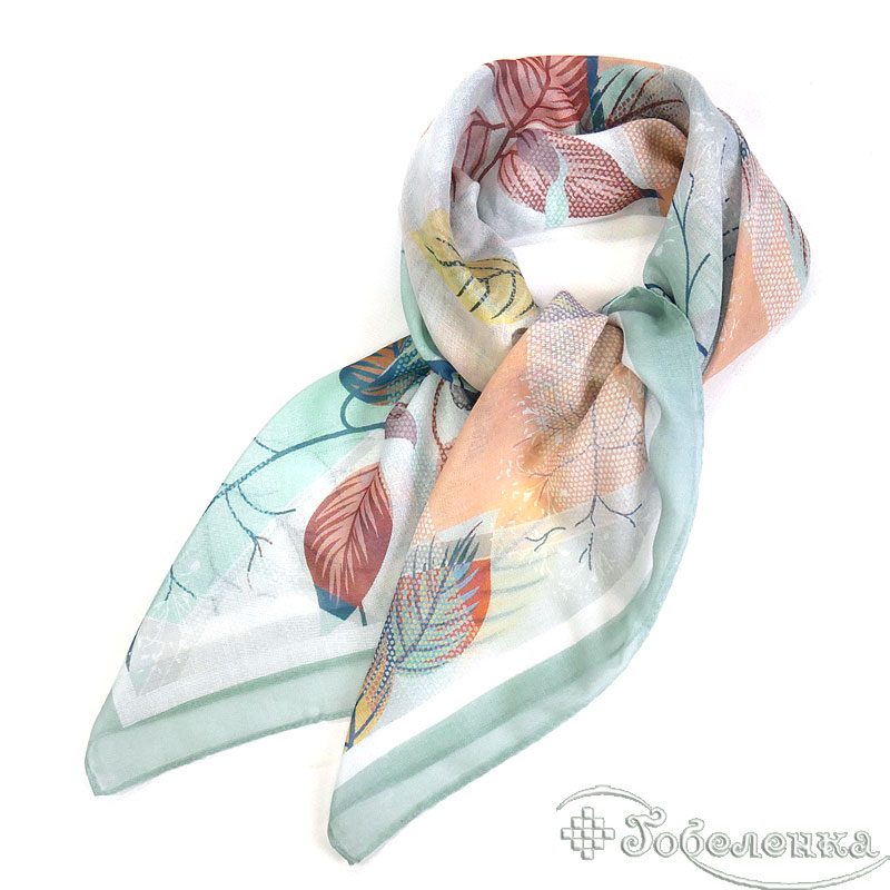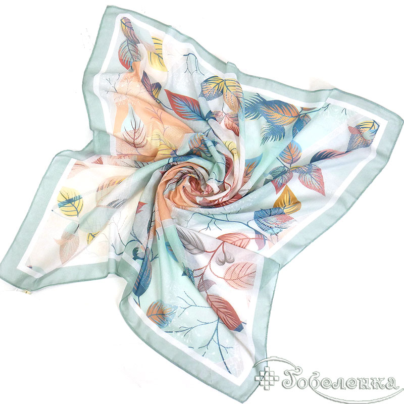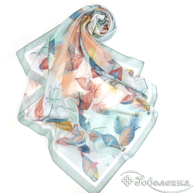 Добавьте Листики №3 в корзину, если ищете хлопковый платок в свежей бирюзовой гамме - он легко освежает базовый гардероб и подходит для подарка