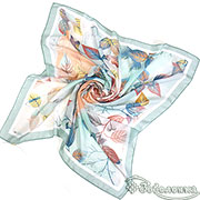 Свежая бирюза и воздушные листики - платок, который добавляет образу лёгкость и чистый цвет.