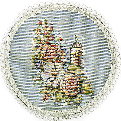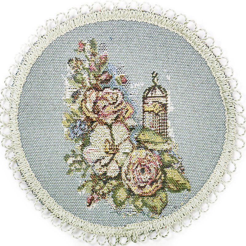 Салфетка гобеленовая круглая Французский роман (цветы и клетка) D=19 см (+/−1) - мини‑акцент для сервировки: под кружку, пиалу, вазочку или свечу.