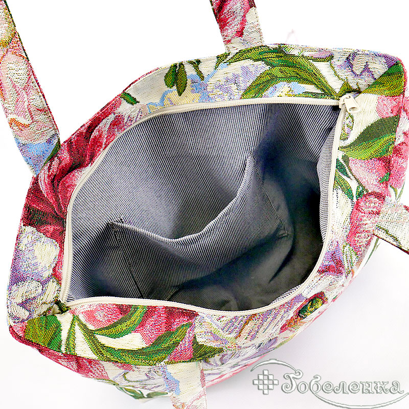— Ручки из гобелена (высота 32 см) удобны для ношения на плече, а крепление на швах гарантирует долговечность даже при ежедневном использовании.