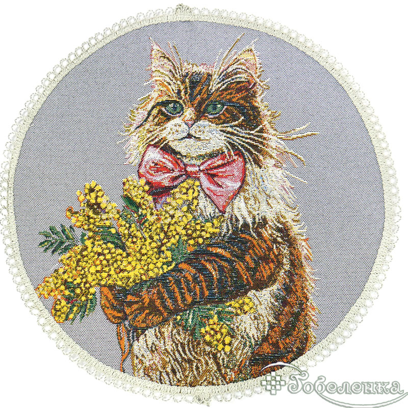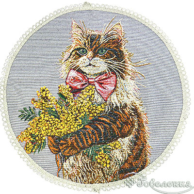 Оставить отзыв о "Салфетка декоративная Кот с мимозой D-40 -+1,5 см (светлый фон), гобелен"