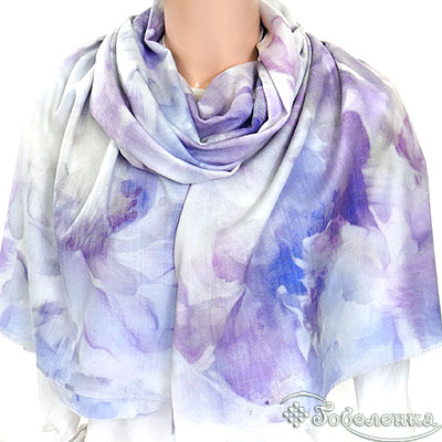 Палантин Мелодия цветов №3 (пастельно-фиалковый)-не просто палантин, а симфония материалов, где шелковистость встречается с теплом.