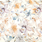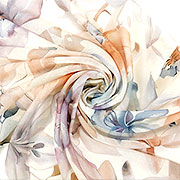 Цвет и рисунок: теплые карамельные акценты - от медового до золотистого, словно солнечные зайчики на лепестках, лиловые переходы -от дымчатого до глубокого сиреневого, с перламутровым отливом, как волны в сумерках. А серо-бежевые листья будто тонкие линии, которые создают объем, и кажется, что цветы дышат в ритме ветра.