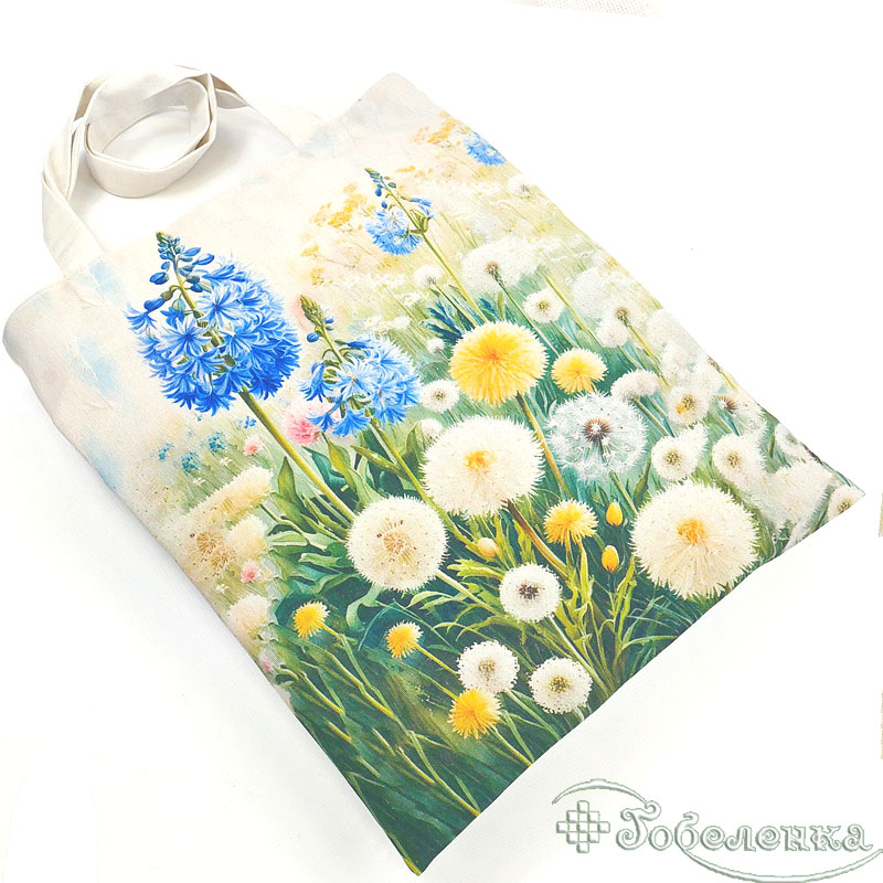 Оставить отзыв о "Сумка шоппер Геоцинты и одуванчики 42х35 см, хлопок+печать"