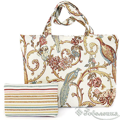 Набор подарочный Райский сад: Сумка с подкладкой и молнией (широкая) 31х42 см, гобелен+ Косметичка на молнии гобелен 14х20 см