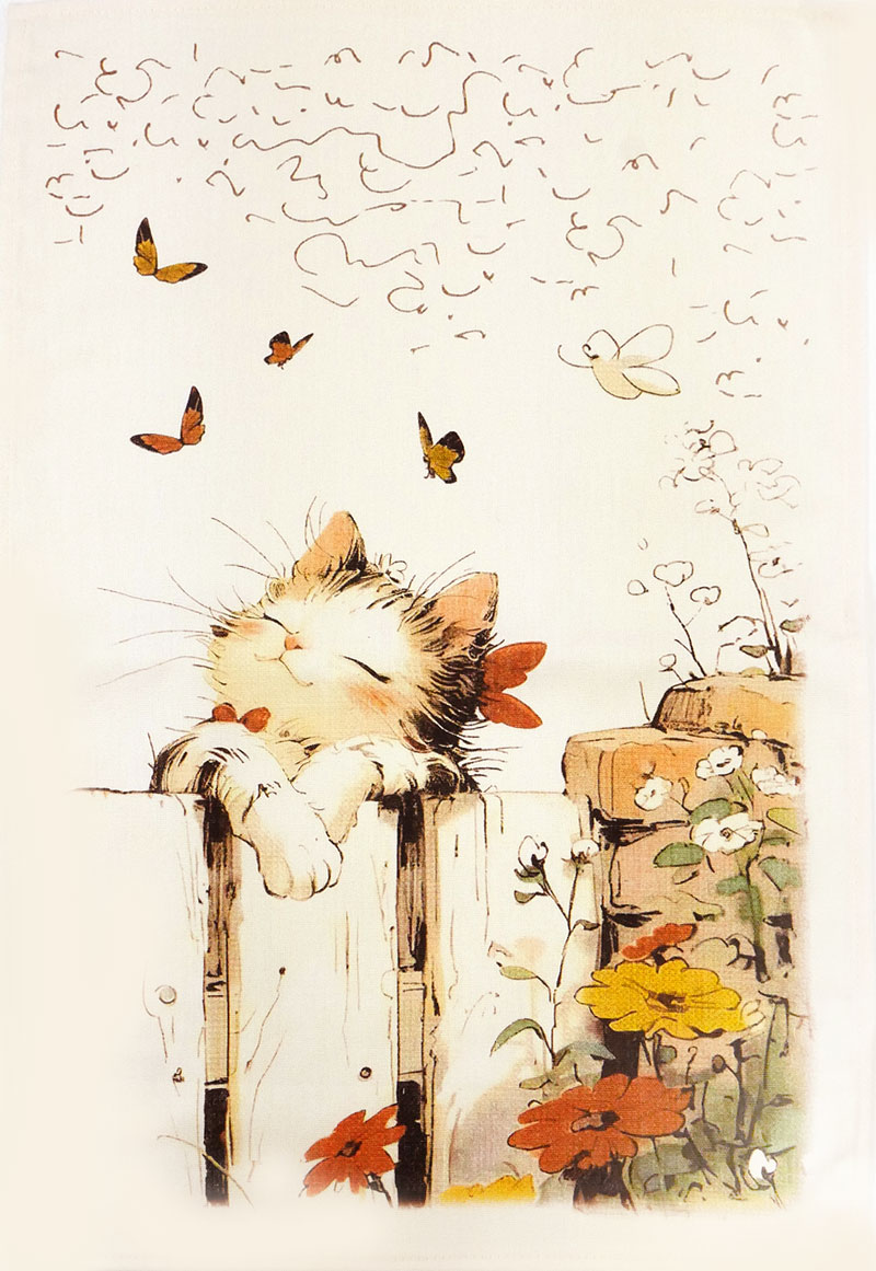 Оставить отзыв о "Кухонное полотенце Мечтательный котик 39х60 см. (печать, лен 50%, хл 50%)"
