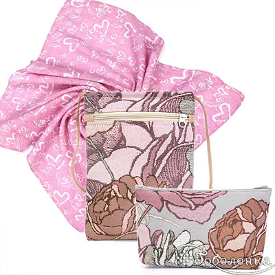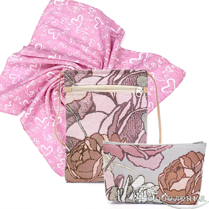 Набор подарочный Розовый сад - это комплект из гобелена с бутонами роз и красивым шейным платком. Сумочка для телефона на молнии 15×20 см и косметичка на молнии 14×20 см- удобный вариант “всё по местам” на каждый день.