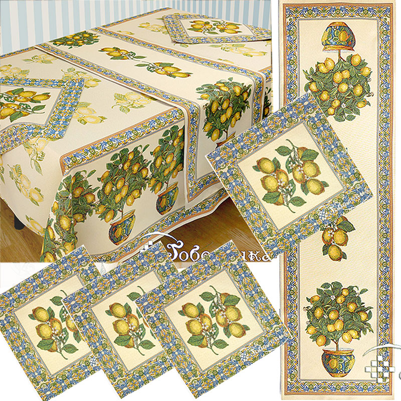 Оставить отзыв о "Подарочный набор Сицилийские лимоны, гобелен : Скатерть 160х190 см + Скатерть-дорожка 143х38 см + Салфетка 38х38 см (4шт)"
