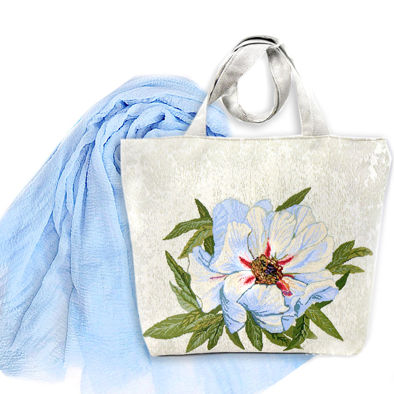Сумка с подкладкой и молнией Пион – воплощение женственности, успеха и внутренней гармонии + Палантин Бриз (небесно-голубой) 90х180 см (Хлопок 100%)