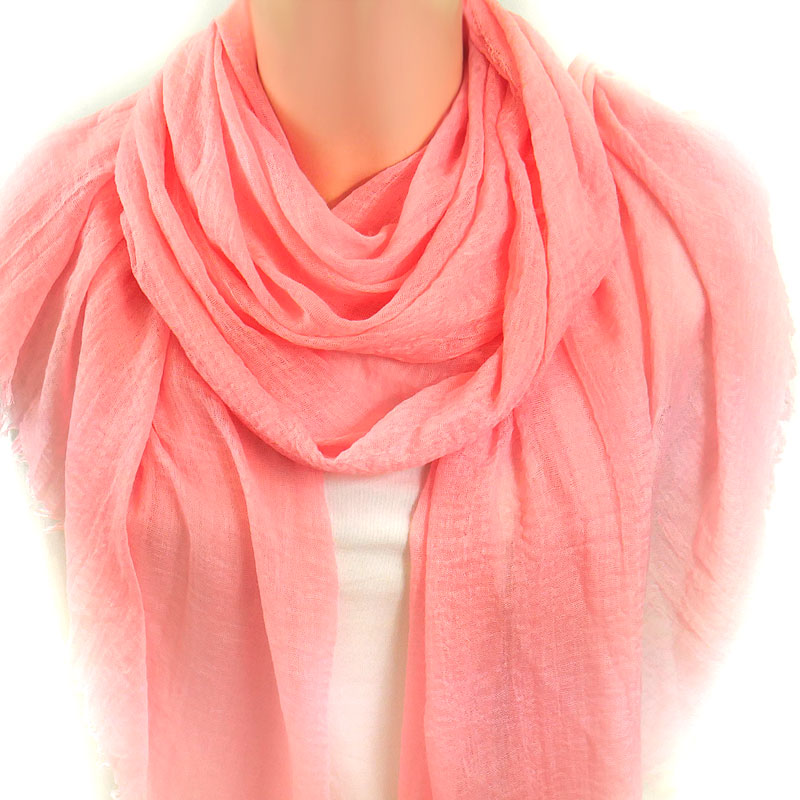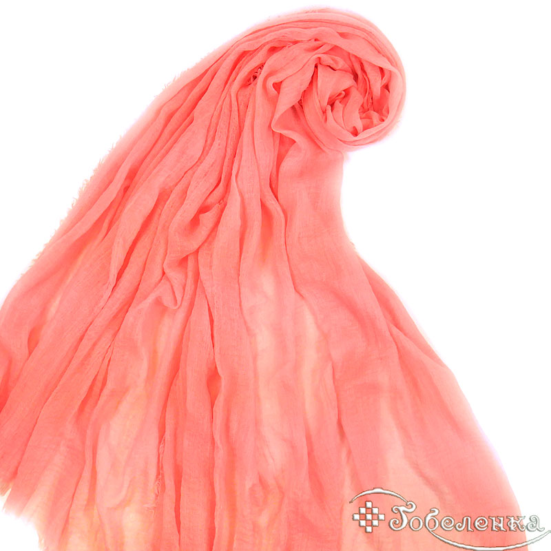 Флорисцентно-коралловый палантин из хлопка 100% - лёгкий, тонкий, размер 92×180 см, для весны и лета. Этот яркий палантин раскрывается через чистый, насыщенный оттенок.