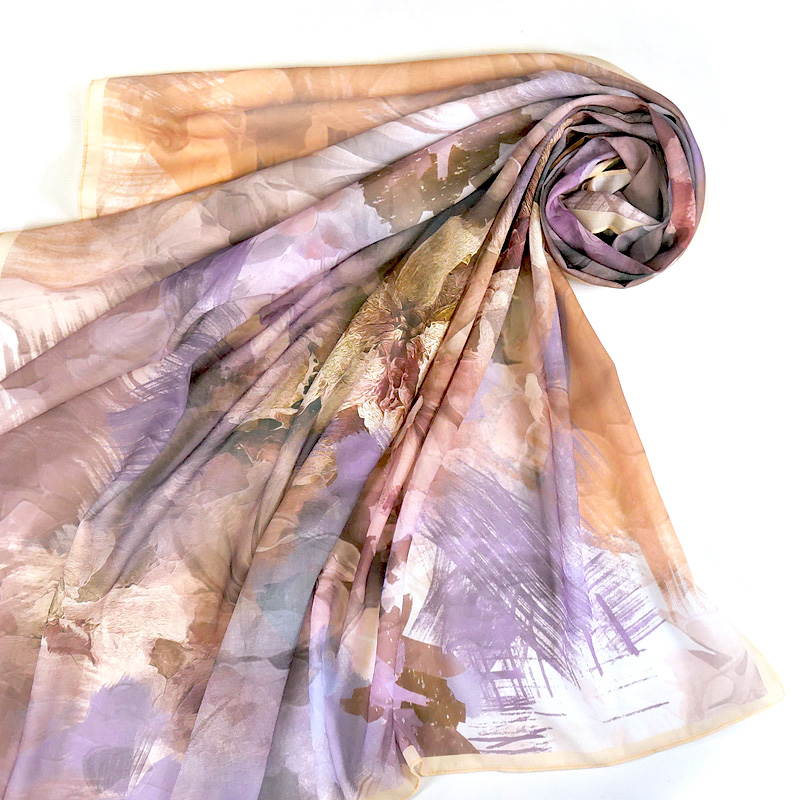 В составе — вискоза (62%) и модал (38%). Вискоза дарит платку шелковистую мягкость и прекрасную драпируемость, а модал — это инновационное волокно из натуральной целлюлозы, которое делает ткань необычайно нежной, прочной и устойчивой к деформации. Вместе они создают идеальный тандем: ткань приятна к телу, отлично пропускает воздух и сохраняет безупречный вид.