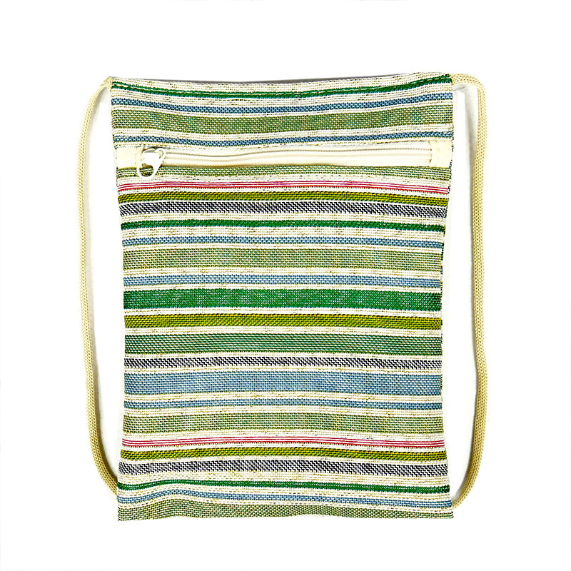 Эта компактная сумочка для телефона на молнии из гобелена Весенняя Мелодия - словно весенний день в миниатюре: жизнерадостные горизонтальные полоски в зелёных, голубых, розовых и бежевых тонах создают ощущение свежести, лёгкости и хорошего настроения.